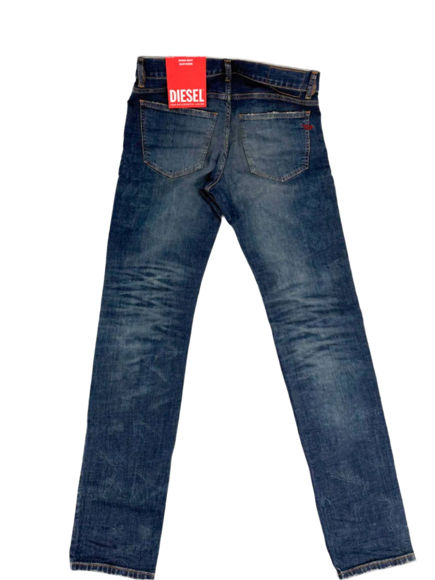 Discover the Diesel Men's D-strukt Slim-fit Stretch Denim Jeans, designed for those who value both style and comfort. Crafted from Italian denim, these pants feature a textured finish in a classic medium blue with subtle abrasions and a modern dark wash. The slim-fit silhouette is complemented by a straight leg and a practical button closure. Care for these versatile jeans is easy with machine washing, making them an ideal choice for summer, concerts, or New Year’s Eve celebrations.