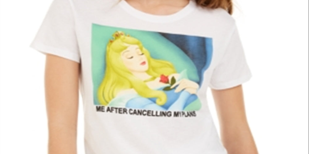 Camiseta com estampa gráfica da Bela Adormecida da Disney Juniors, tamanho pequeno, branca