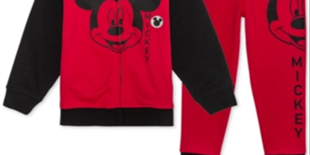 adicione um estilo icônico de desenho animado ao seu guarda-roupa para o clima frio com as estampas chamativas do Mickey Mouse apresentadas no moletom com capuz e calças de moletom com blocos de cores quentes incluídos neste visual pronto para brincar da Disney