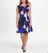 Vestido Dkny com estampa abstrata, decote plissado e ajuste evasê, azul, tamanho 8