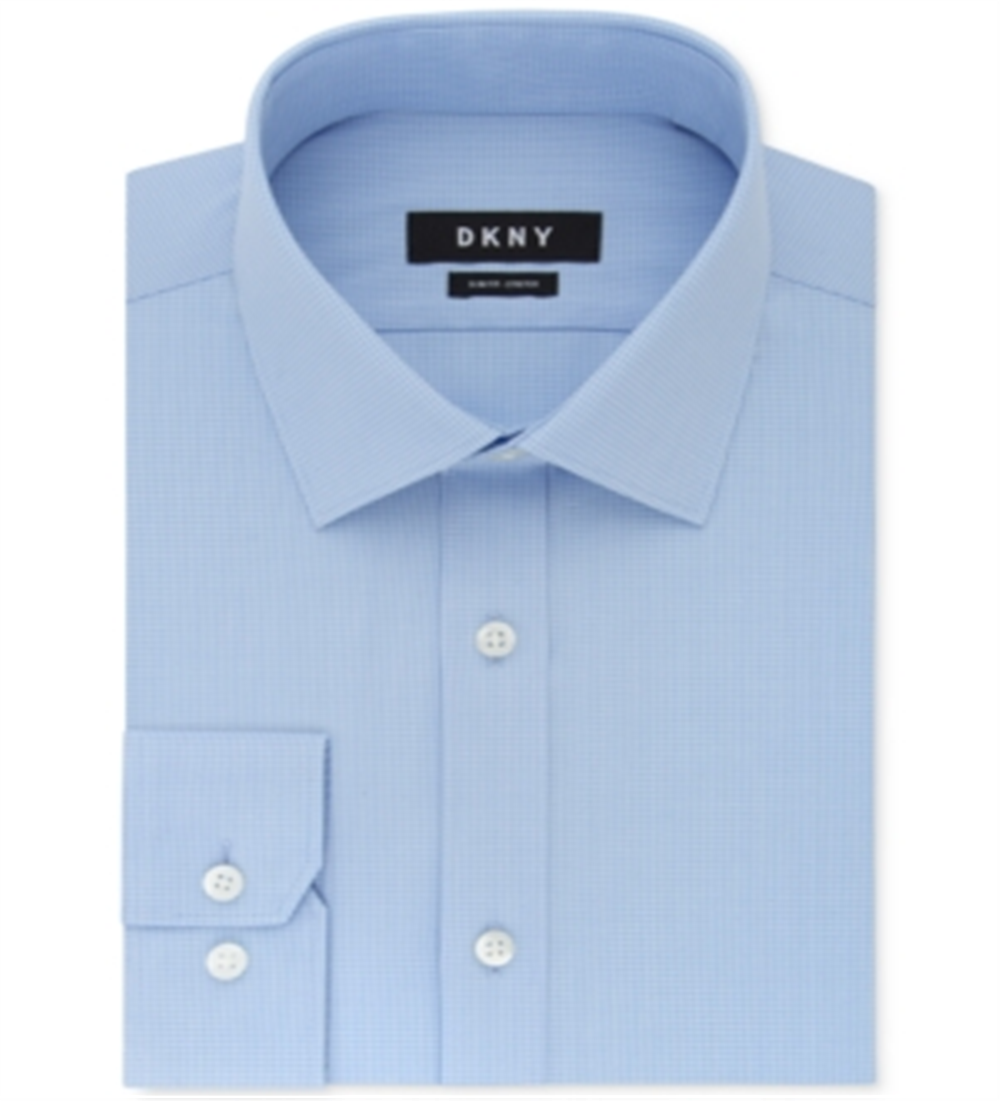 Camisa social masculina DKNY Slim Fit Stretch Mini Xadrez Azul Tamanho 16X34-35