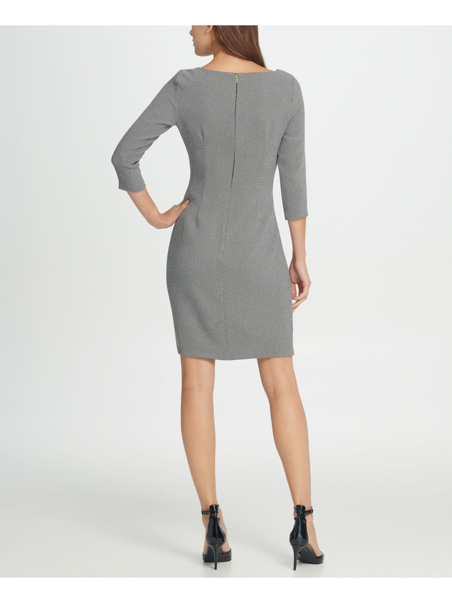 Vestido formal feminino DKNY com manga 3/4 e bainha acima do joelho, preto, tamanho 8