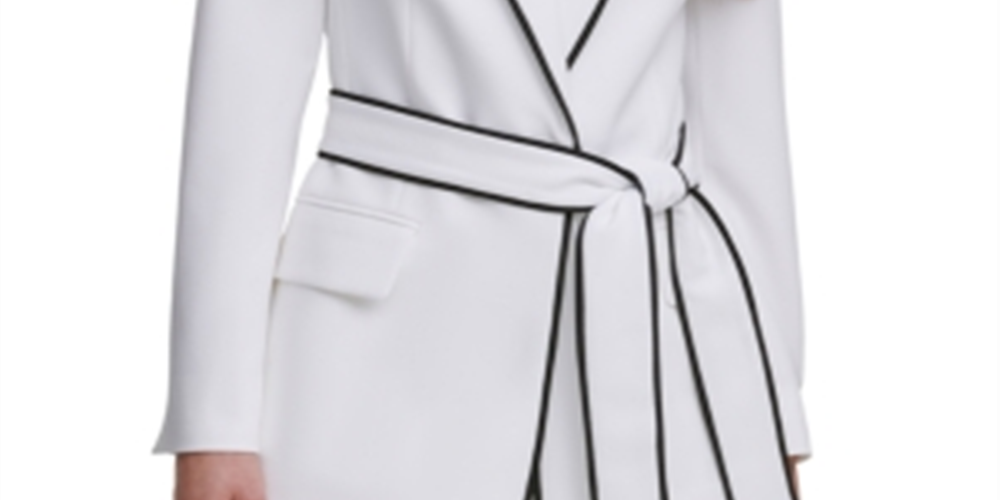 Blazer feminino DKNY com cinto e acabamento contrastante, branco, tamanho 12