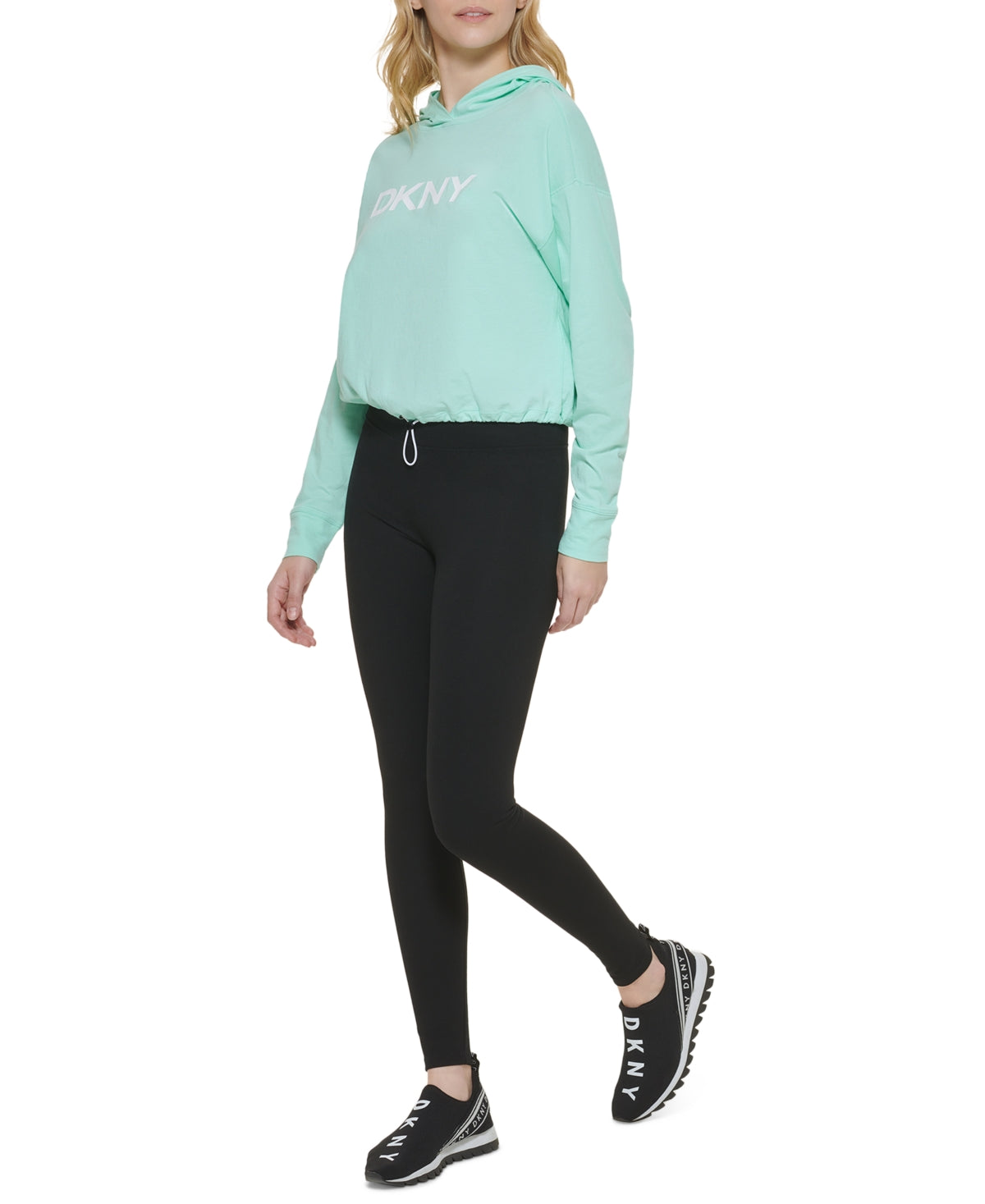 Corte para um toque de estilo urbano | este moletom curto de algodão com capuz da DKNY vem com bainha elástica para uma silhueta que valoriza o corpo. | Gola redonda com capuz; estampa do logotipo na frente; cordão na cintura | 100% algodão | Lavável à máquina | Importado