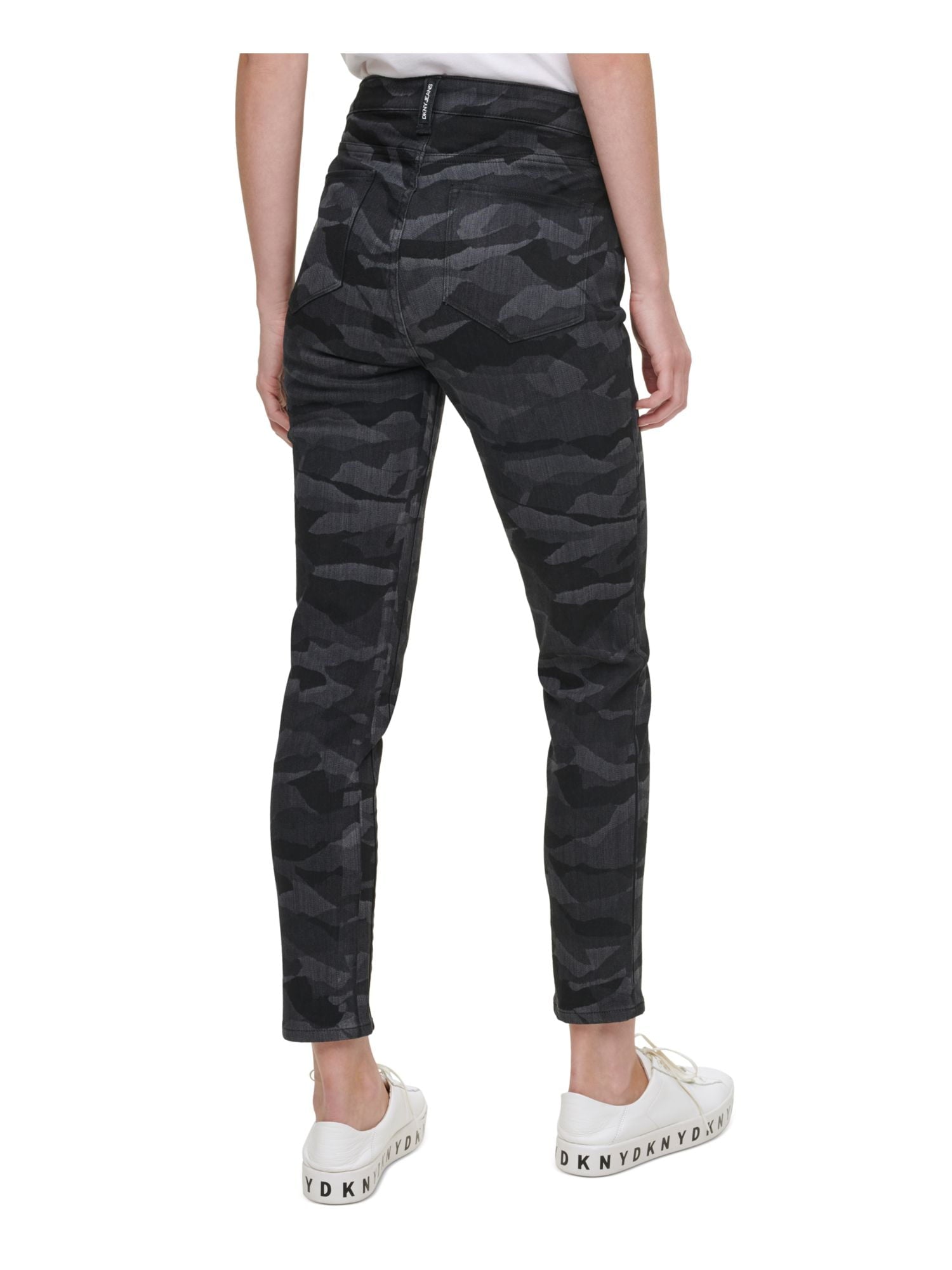 Calça skinny camuflada feminina DKNY, preta, tamanho 27