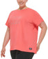 Camiseta feminina DKNY de algodão com logotipo embelezado, vermelha, tamanho 1X
