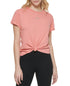 Camiseta feminina DKNY de algodão com logotipo metálico, vermelha, tamanho extragrande