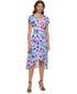Vestido envelope falso com estampa floral DKNY feminino, azul, tamanho 4