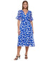 Vestido envelope falso com estampa floral e mangas franzidas DKNY feminino, roxo, tamanho 12