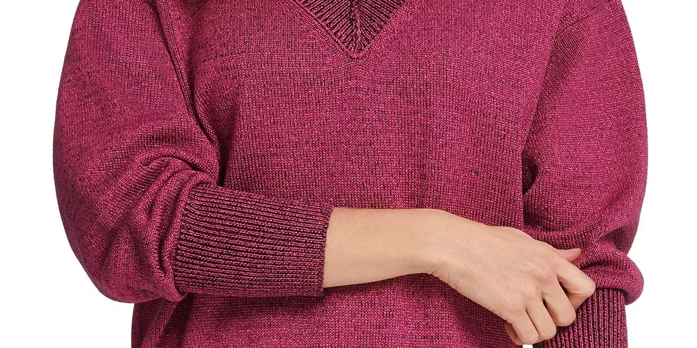 Aprox. 24 de comprimento | Decote em V | Acabamento canelado | Viscose/acrílico/poliéster/metálico | Lavagem à mão | Importado