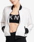 Jaqueta bomber gráfica feminina DKNY, branca, tamanho extragrande