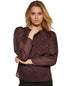 Fios metálicos brilham suavemente em uma blusa semitransparente com pregas na frente para um toque de modelagem e acabamento com pequenos zíperes nas mangas | Gola alta Mangas compridas Punhos com zíper 100% poliéster Lavagem à máquina | Secagem na horizontal Importado