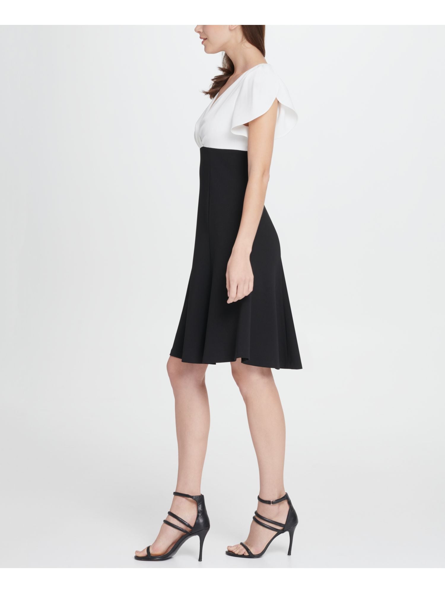 Vestido feminino DKNY com manga pétala acima do joelho, preto, tamanho 14
