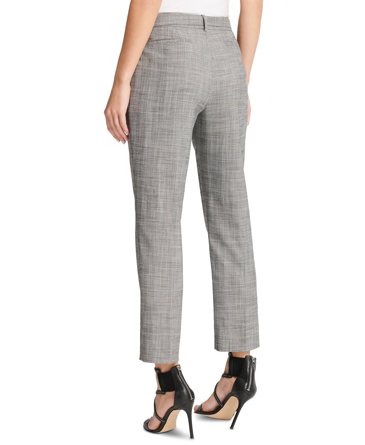 Comprimento interno aproximado: 66 cm | Cós médio; ajuste reto nos quadris e coxas | Projetado para se ajustar e valorizar pessoas de 1,62 m ou menos | Zíper e fecho de gancho e barra na frente; passantes para cinto | Amarrações de cinto combinando na cintura | Bolsos no quadril; bolsos embutidos nas costas | Poliéster/raiom/elastano; forro: poliéster