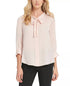 Blusa feminina DKNY Petite Shiny com amarração no pescoço e botões, rosa, tamanho PL