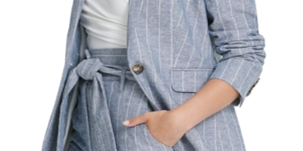 Blazer feminino DKNY com listras e um botão, azul, tamanho 18