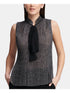 Blusa feminina DKNY estampada, plissada, com decote em V, preta, tamanho pequeno médio