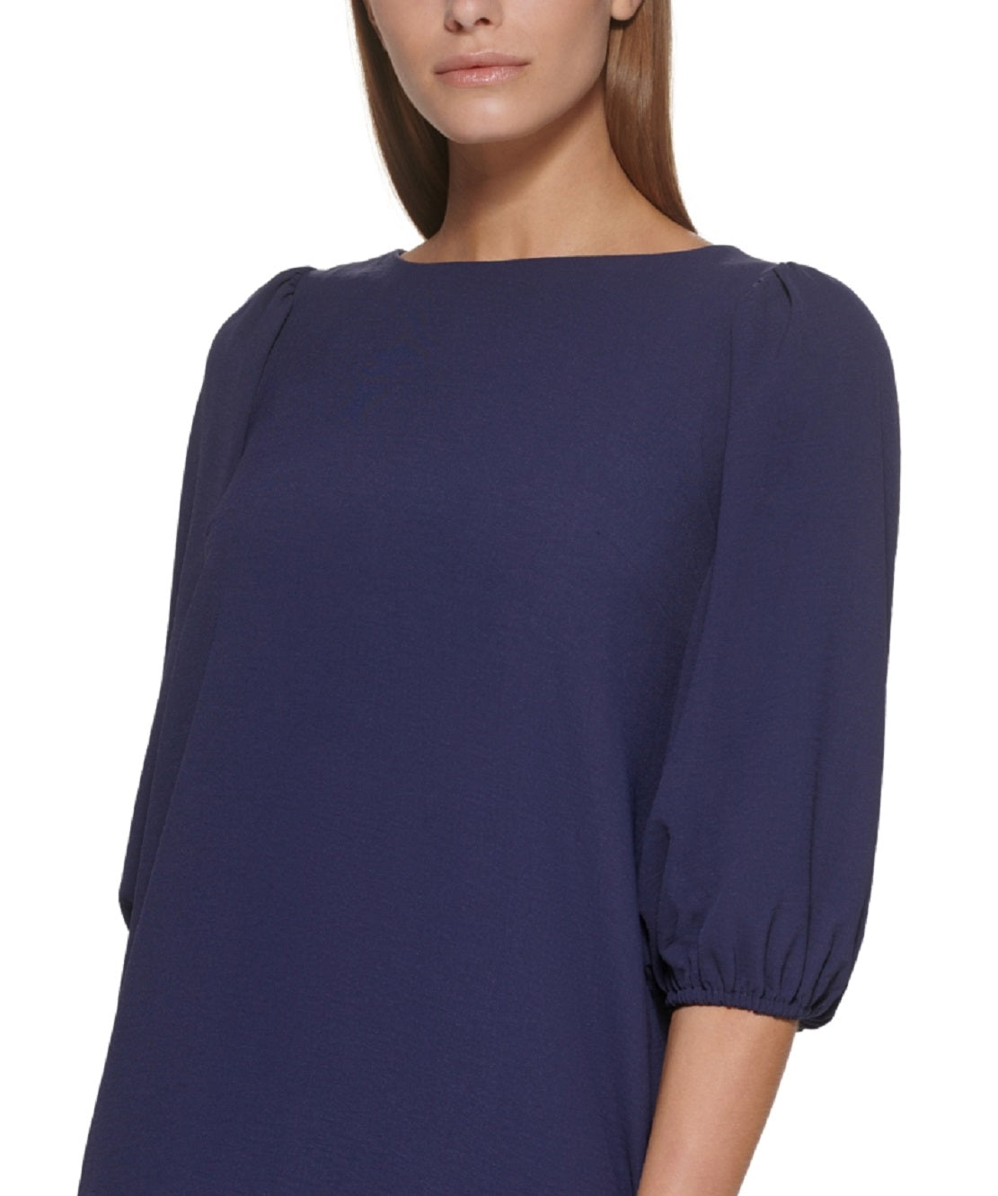 Chique sem esforço | O vestido trapézio minimalista da DKNY com mangas e bainhas balonê ostenta uma silhueta relaxada, porém elegante, que oferece infinitas opções de estilo para uma adição versátil ao seu guarda-roupa. | Comprimento aproximado de 86 cm, do centro do decote até a bainha. O comprimento é baseado no tamanho 4 e varia de 1/4 entre os tamanhos | Gola redonda | Abertura nas costas com fecho de botão | Mangas bufantes até o cotovelo