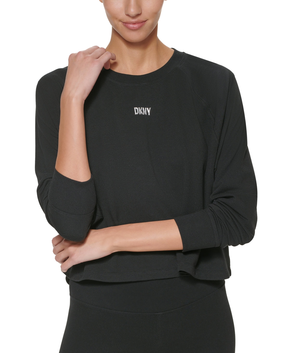 Aposte no suéter cropped de manga comprida da DKNY Sport para combinar com suas leggings favoritas. | Caimento justo; comprimento cropped | Gola redonda; mangas longas raglan; logo no peito | Malha supermacia | Viscose/poliéster/elastano | Lavável à máquina | Importado