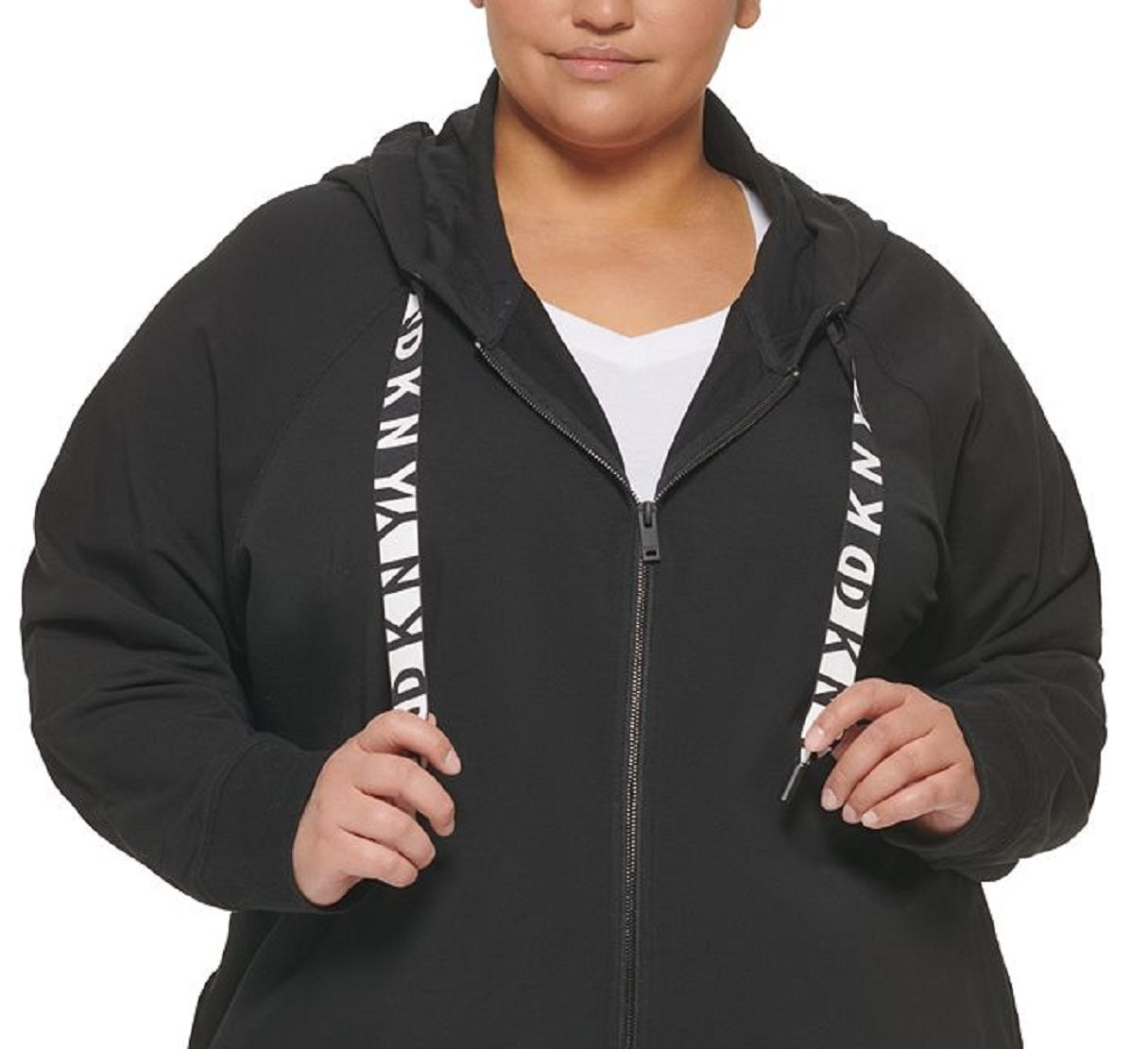 Moletom com capuz feminino DKNY Sport Plus Logo com cordão French Terry, preto, tamanho 3X