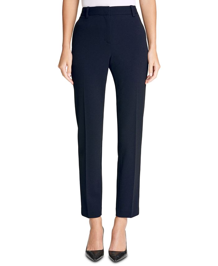 Calça social feminina DKNY Stretch Crepe Essex com perna reta, azul, tamanho 12