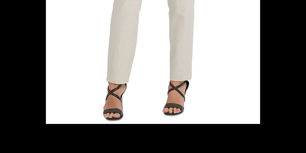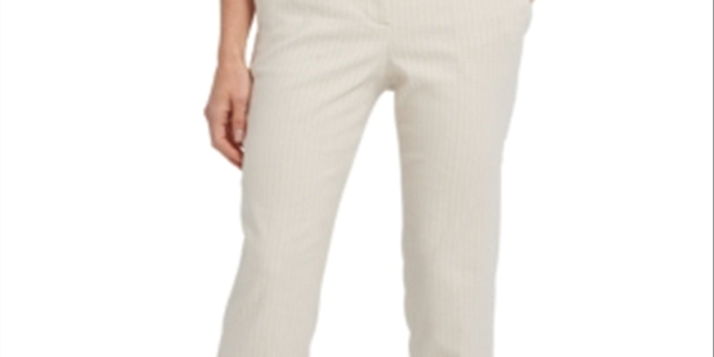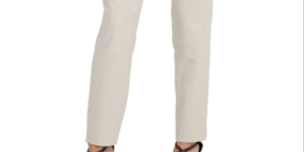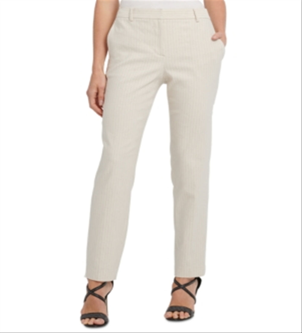 Calça social feminina listrada DKNY com frente lisa e perna reta, marrom, tamanho 6