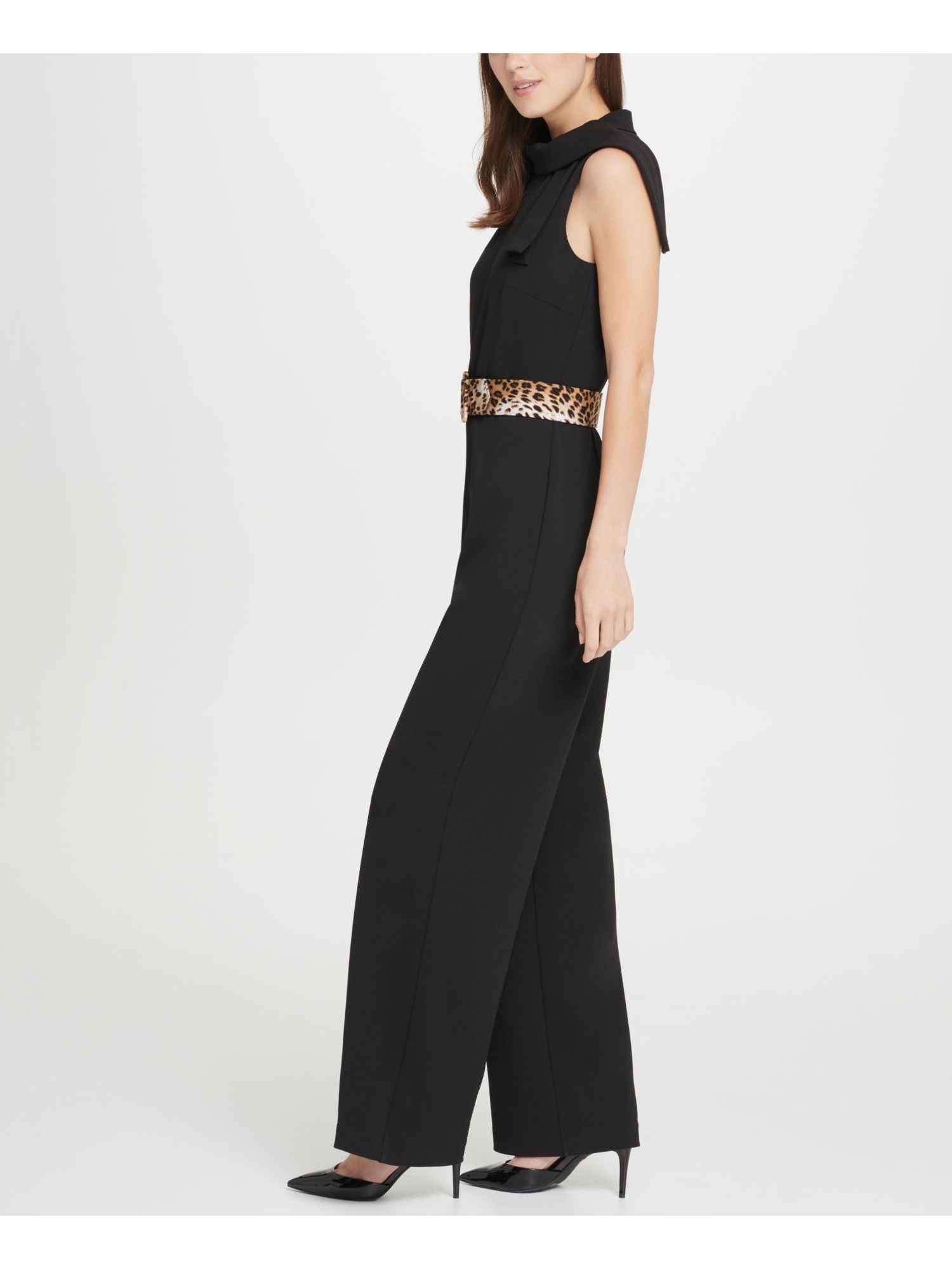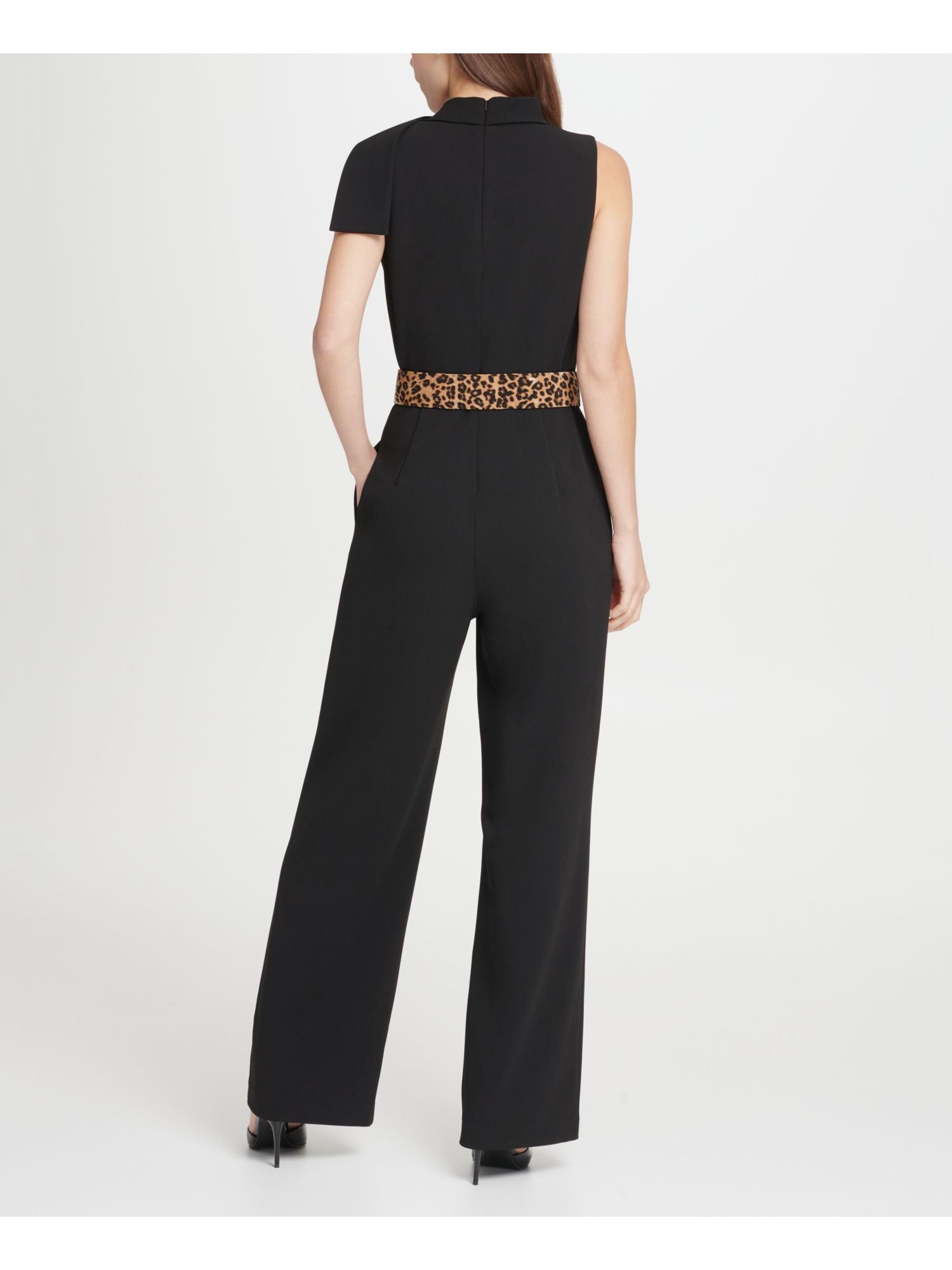 Macacão feminino DKNY com decote em V e cinto de leopardo, preto, tamanho 16