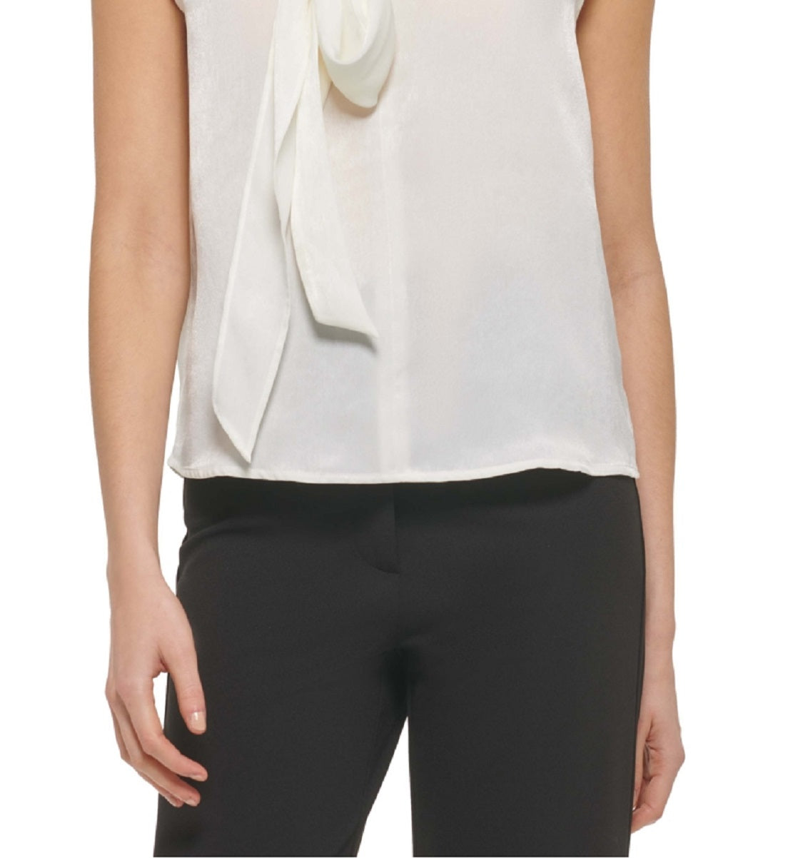 Blusa feminina DKNY com decote em V e gravata, branca, tamanho extragrande