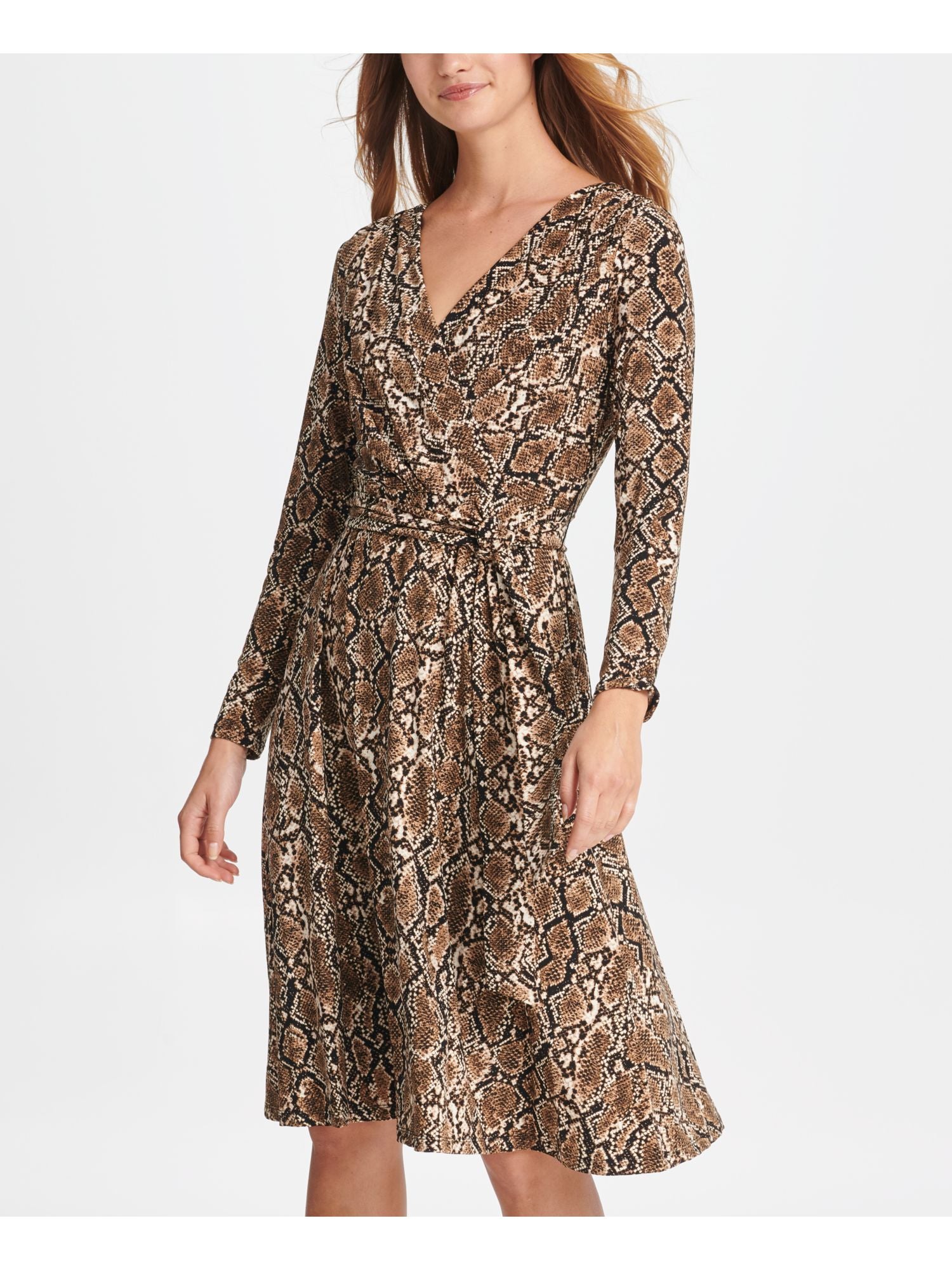 DKNY|Estilo; Vestido|Ocasião; Festa|Tamanho; 14|Material; Poliéster|Cor; Bege|Decote em V