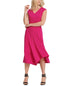 Gire e gire com estilo com este vestido midi DKNY que nunca decepciona. Esta blusa com decote em V drapeja poeticamente em uma silhueta elegante. | Comprimento aproximado de 125 cm | Decote em V; corte midi justo | Estilo pulôver | Bainha irregular | Poliéster/elastano | Lavável à máquina