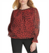 Blusa feminina DKNY com zíper e estampa animal, manga comprida, gola redonda, vermelha, tamanho extragrande