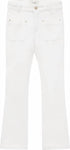Introducing the Girls' Claire Bootcut Jean by DL1961 - Kids', a stylish addition to any young fashionista's wardrobe. With a solid pattern in chic White Tide, these jeans boast a mid-rise fit for comfort. Crafted from 62% Tencel Lyocell, 23% Cotton, and 14% Elasterell, they feature a classic button closure. Designed for easy maintenance, simply machine wash and tumble dry.