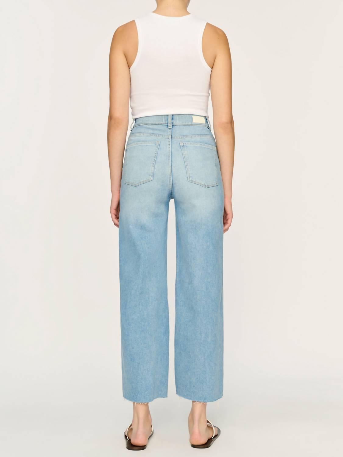 High-waist is here to stay and we especially love this style. Elevate your denim game with the DL1961 Women's Hepburn Wide Leg High Rise Jeans in Light Island Park. These jeans boast a flattering high-rise fit with a vintage-inspired silhouette that is fitted through the waist and seat before tapering outward for a wide leg that grazes the ankle. Crafted from a cotton blend composed of 99% Cotton and 1% Lycra, they offer minimal stretch and run true to size. Closure: Button closure. Care: Machine wash and tumble dry. With a relaxed fit, 11.5" rise, 27" inseam, and 21.5" leg opening, these jeans seamlessly blend comfort and style, perfect for a minimalist summer vacation.
