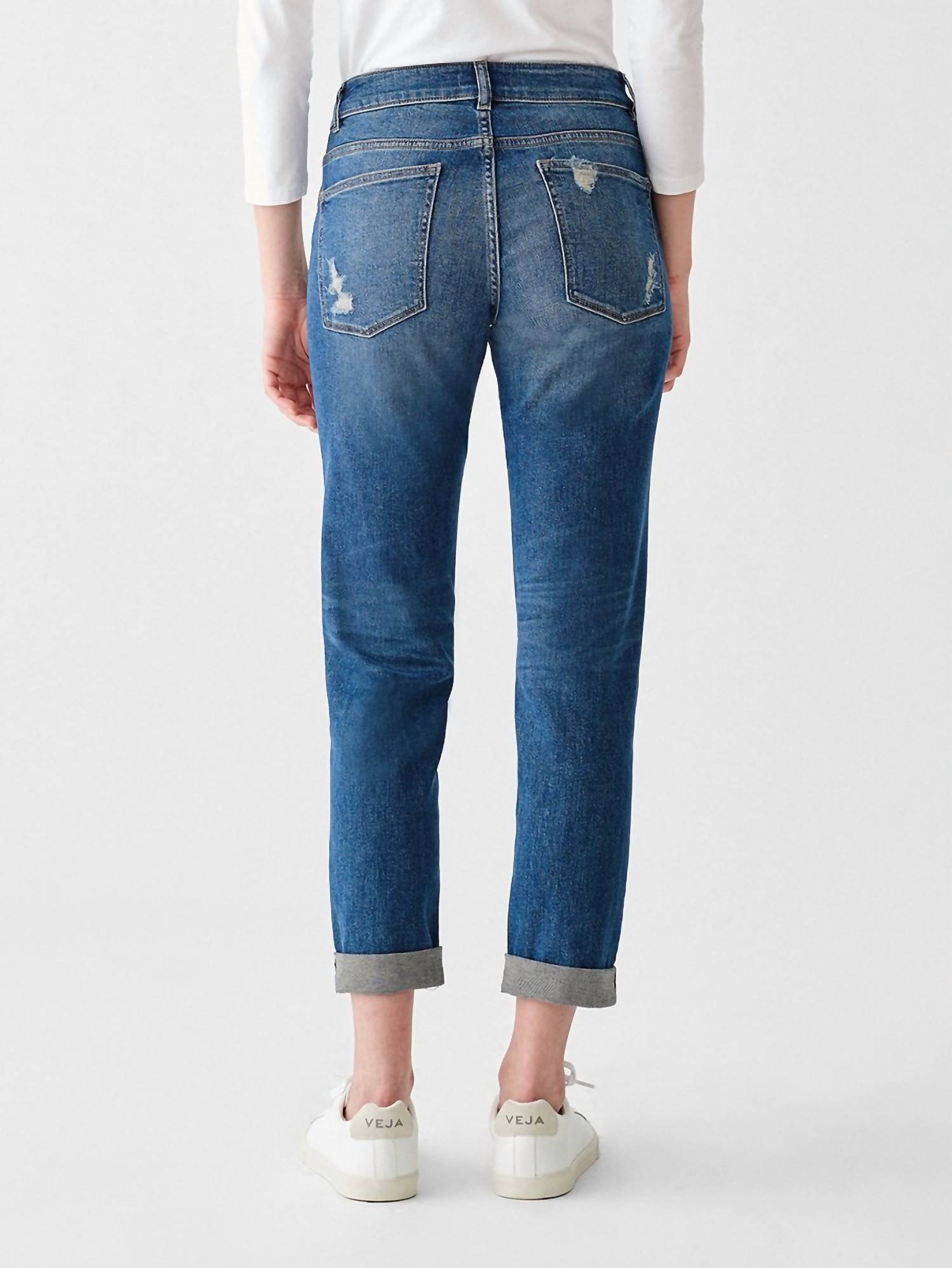 These boyfriend jeans make anything you pair them with look effortlessly cool. Introducing the Riley Boyfriend Straight Jean by DL1961 in the Adams colorway, perfect for achieving that laid-back yet stylish look. These jeans offer a relaxed, straight leg fit with a mid-rise waist and a versatile 27-inch inseam, beautifully crafted from 98% cotton and 2% Lycra for added comfort. The garment features a zip closure, functional pockets, and a vintage-inspired dark wash with subtle nickings for a truly authentic look. Care for these jeans is a breeze — simply machine wash and enjoy their unique character evolving with each wear.