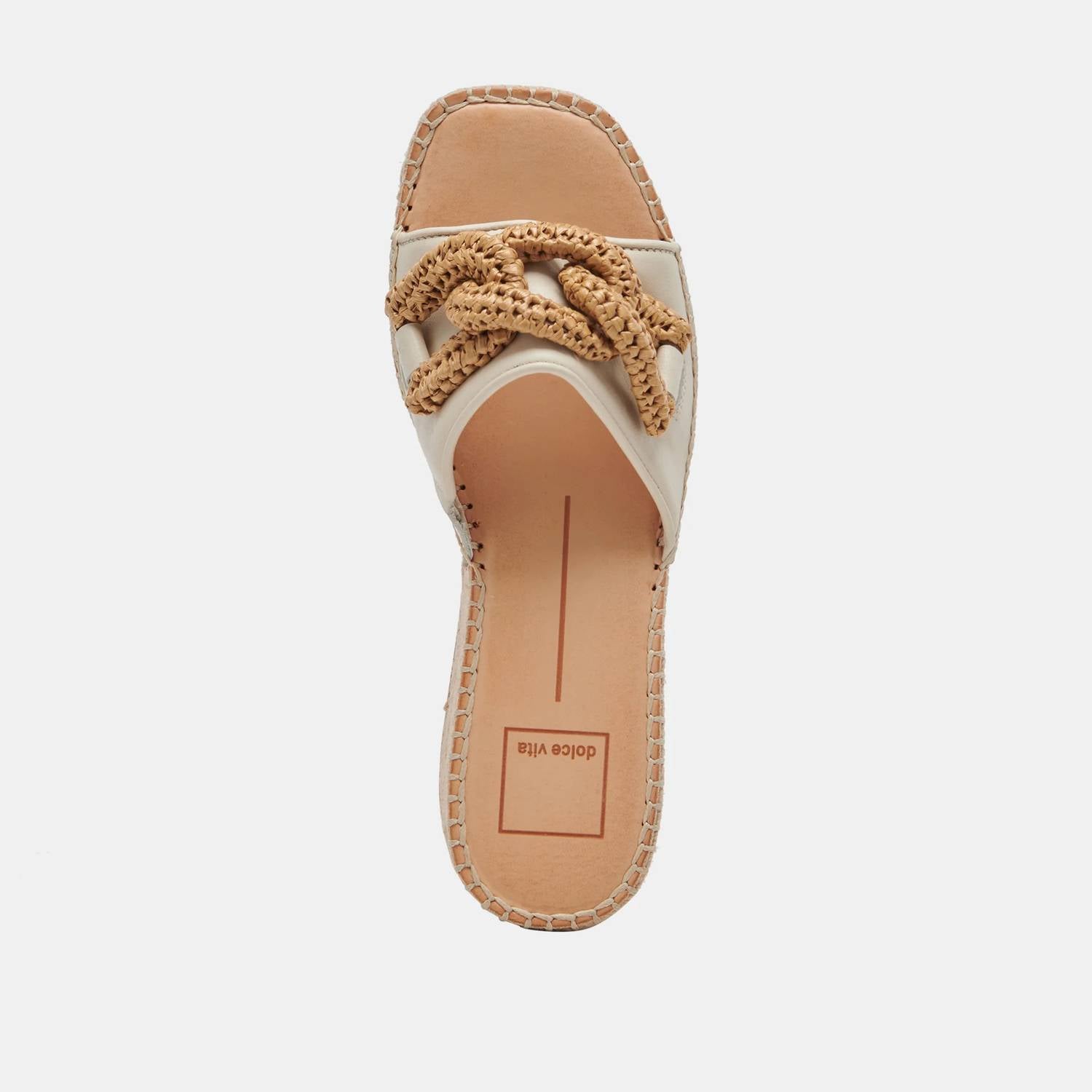 Sapatos plataforma atemporais que serão relevantes estação após estação. Calce sandálias de couro marfim imaculado sem esforço. As elegantes sandálias anabela apresentam um solado plataforma de juta. Bico quadrado diferenciado e detalhe de nó trançado oversized. Combine couro ecológico e materiais têxteis reciclados. Ofereça a combinação perfeita de conforto e design moderno. Salto confortável de 6 cm e plataforma de 3,8 cm. Eleve seu visual sem abrir mão da praticidade. Sensação luxuosa de confiança.