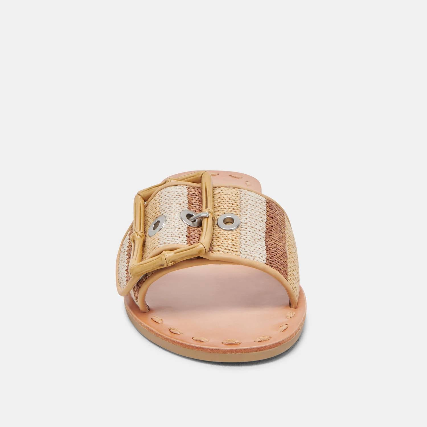 Descubra a Sandália Feminina de Ráfia da Dolce Vita, uma escolha elegante para fashionistas ecoconscientes. Confeccionadas com cabedal têxtil, sintético e couro, estas sandálias apresentam bico redondo e salto baixo. O solado sintético reciclado e o forro em couro alternativo à base de água enfatizam a sustentabilidade sem comprometer o estilo. Ideais para o dia a dia, estas sandálias multicoloridas na cor bege são fiéis ao tamanho e perfeitas para qualquer passeio casual.