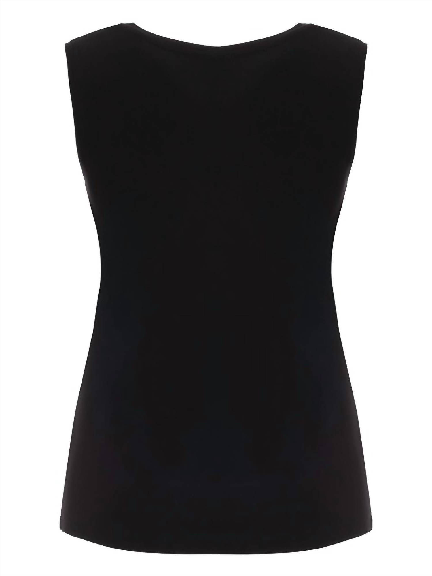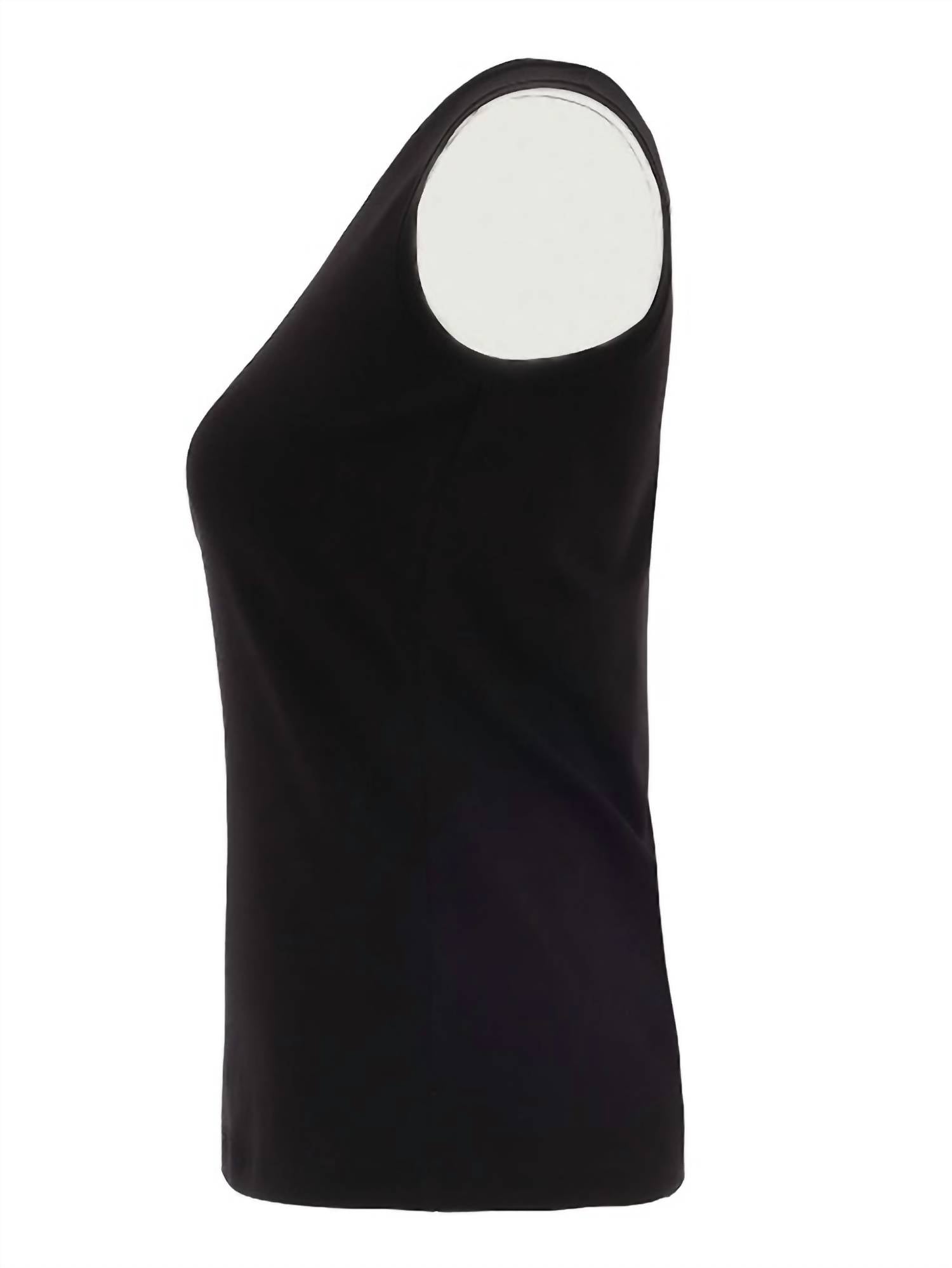 Caimento, tecido e funcionalidade. Esta regata preenche todos os requisitos. Dolcezza Top “Sporty Chic” – regata sem mangas em malha de algodão misto, cor sólida, com lantejoulas prateadas na frente, caimento confortável e tecido elástico. Essencial!