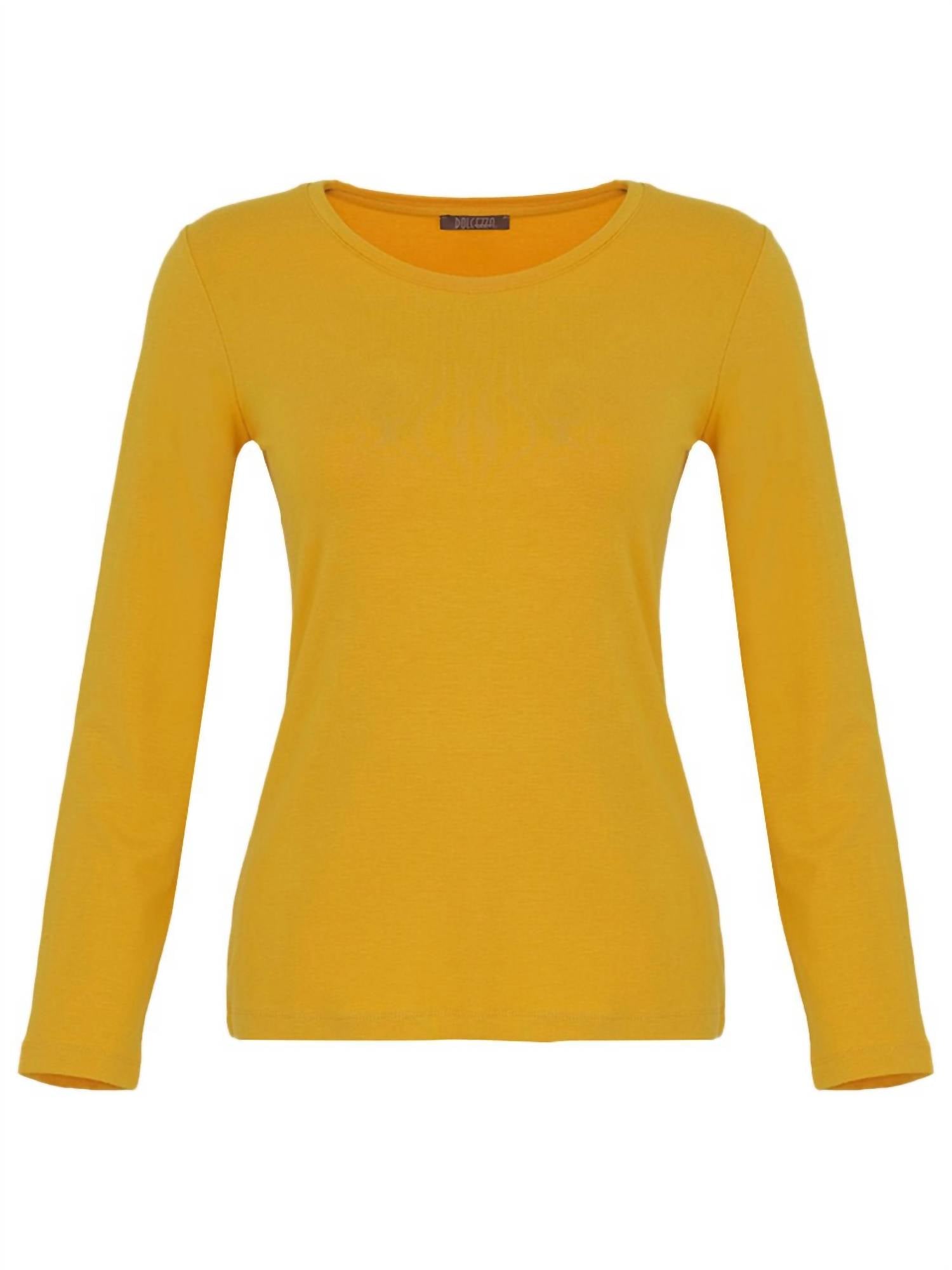 Experience the perfect blend of comfort and style with this trendy crew neck sweater, designed to effortlessly elevate your wardrobe. Pair it with your favorite denim and loafers for the perfect look. Brighten your wardrobe with the Women's Crew Neck Long-Sleeved Top by Dolcezza, a versatile essential in a warm ochre yellow hue. Featuring long sleeves and crafted from a soft viscose blend, this lightweight knit pullover offers both comfort and style. Designed with a crew neckline and a flattering regular fit, it’s perfect for layering or wearing on its own. Closure: Pull on.