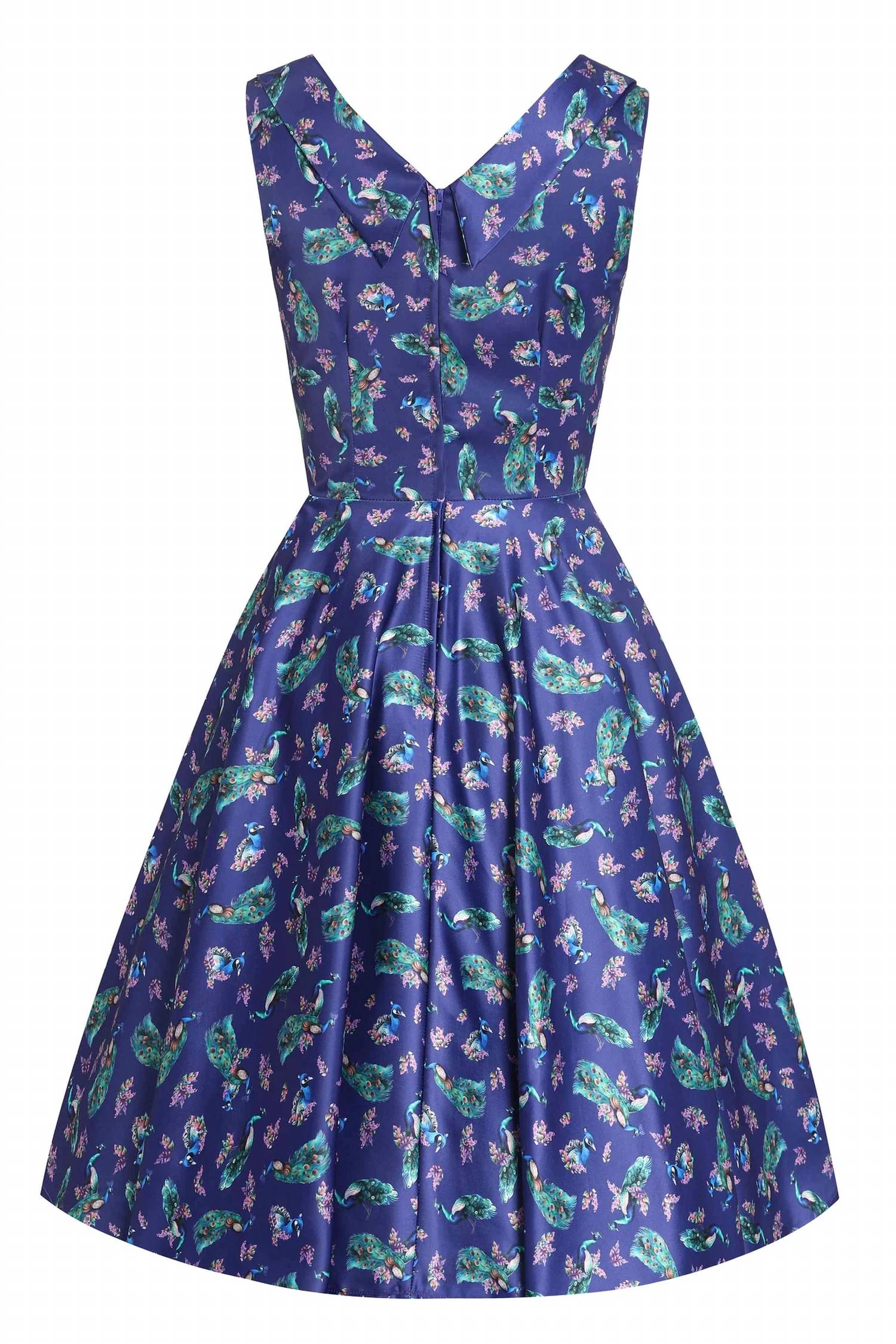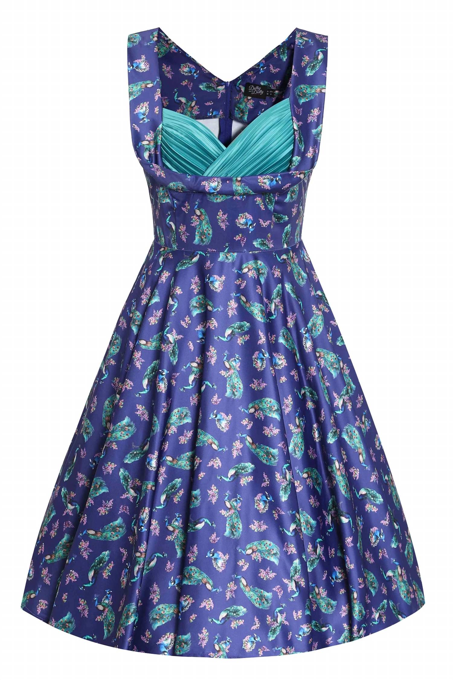 Abrace a elegância atemporal com o Vestido Grace Peacock Pleated Bust da Dolly And Dotty, com uma charmosa estampa de pavão sobre um fundo roxo intenso. Com corte sem mangas e corte flare, este vestido destaca o busto plissado e o decote coração para um toque de glamour. Confeccionado em 97% poliéster e 3% elastano, garante conforto e um caimento perfeito. O vestido possui fecho de zíper invisível para facilitar o uso, ideal para diversas ocasiões em que o estilo é essencial.