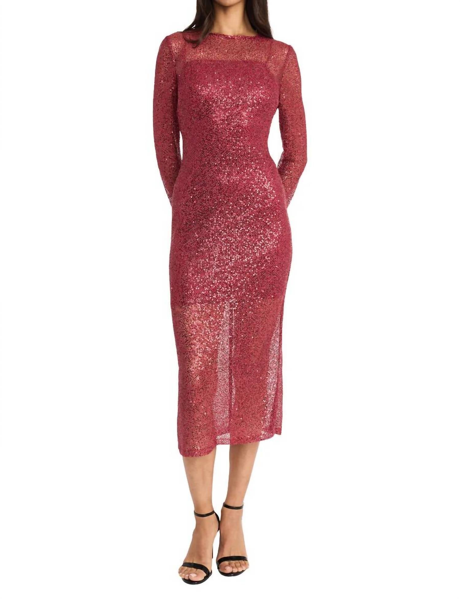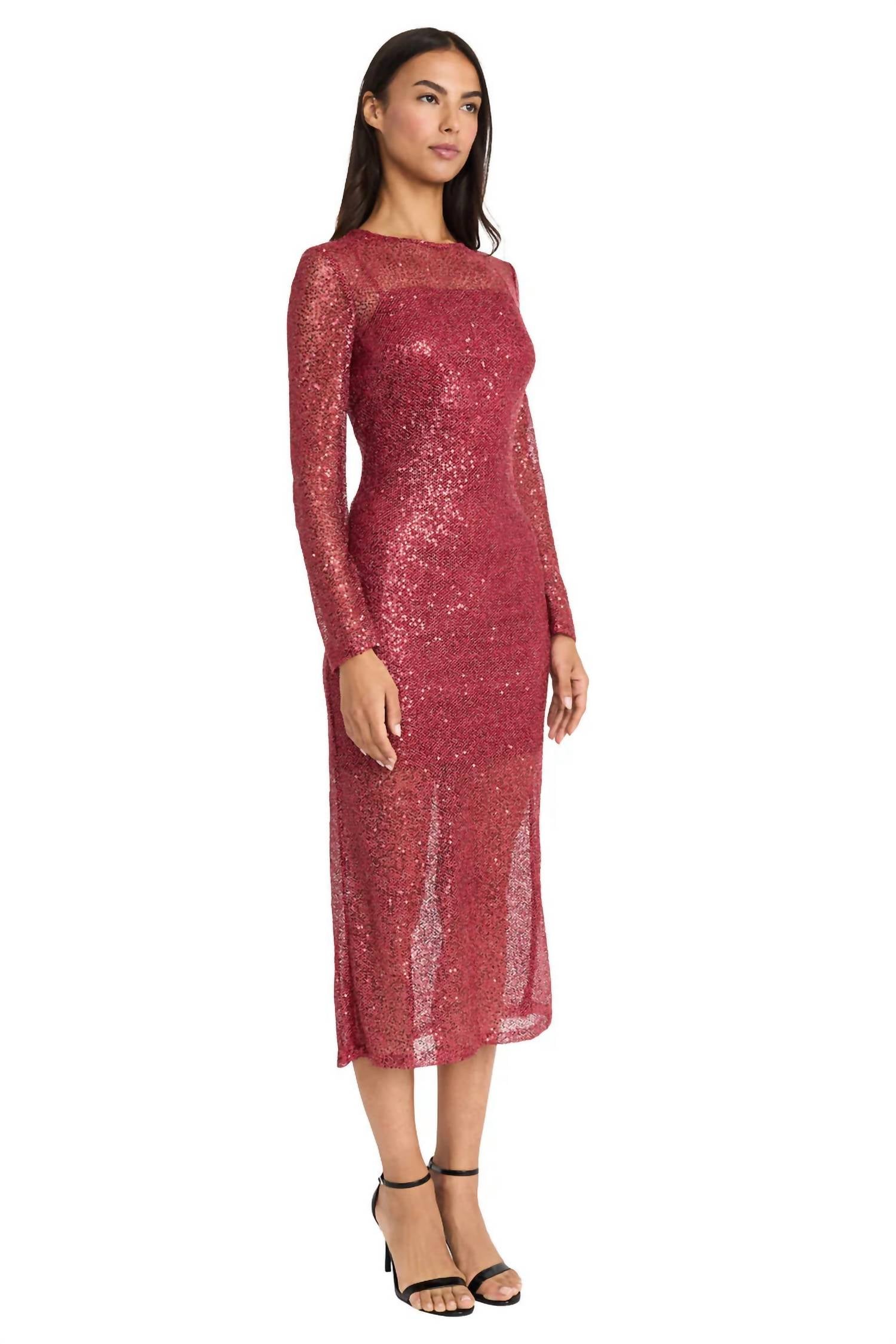 O vestido com o comprimento perfeito existe. Eleve seu look noturno com o Vestido de Lantejoulas em Rede da Donna Morgan, uma escolha deslumbrante no vibrante Vermelho Savvy. Este vestido midi com corte em A apresenta mangas longas e detalhes transparentes, criando um visual texturizado e sofisticado, perfeito para um jantar. Confeccionado em 100% poliéster, o vestido oferece fechamento por cadarço e é totalmente forrado, exceto nas mangas. As instruções de cuidado incluem lavagem à mão com água fria separadamente, evitar alvejantes, secar na horizontal e passar a ferro quente do avesso, se necessário; também pode ser lavado a seco.