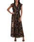 Vestido longo feminino Donna Ricco com mangas esvoaçantes metálicas, preto, tamanho 14