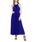 Vestido longo feminino Donna Ricco, plissado, com cinto, azul, tamanho 14