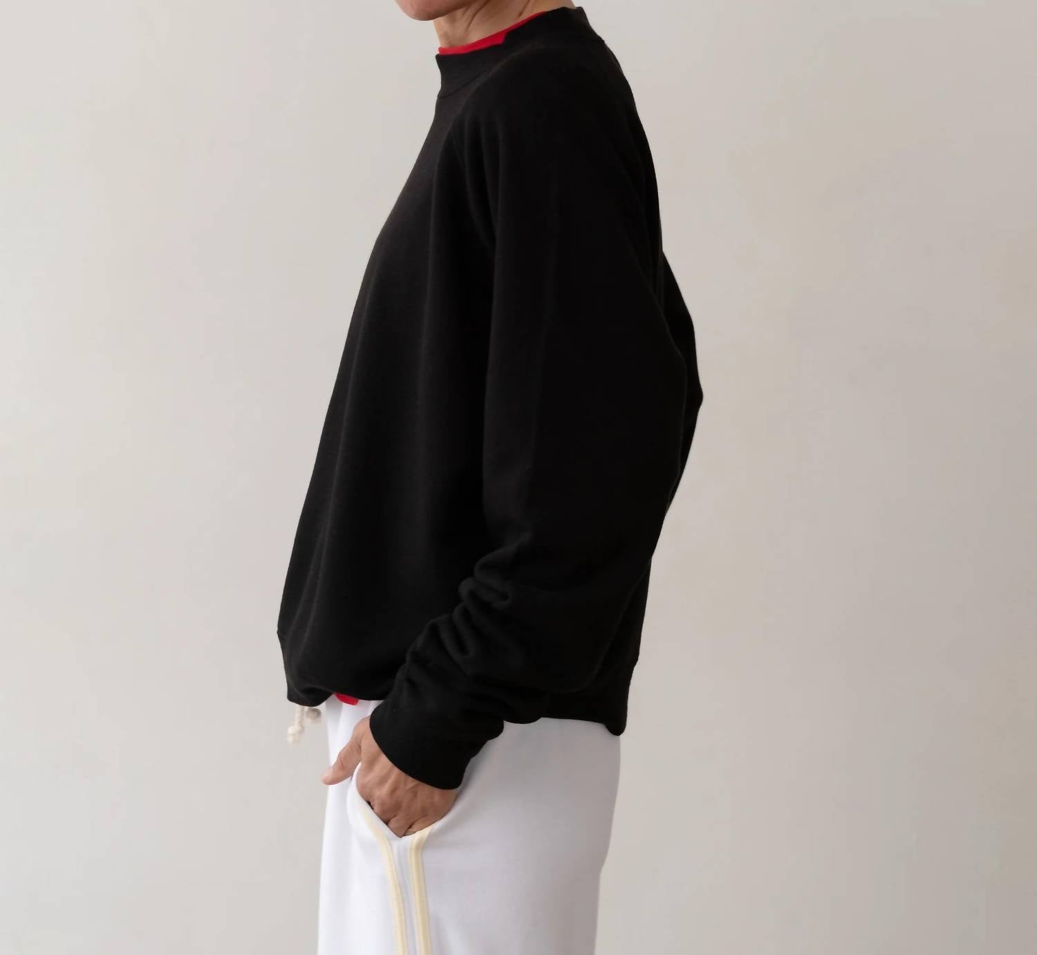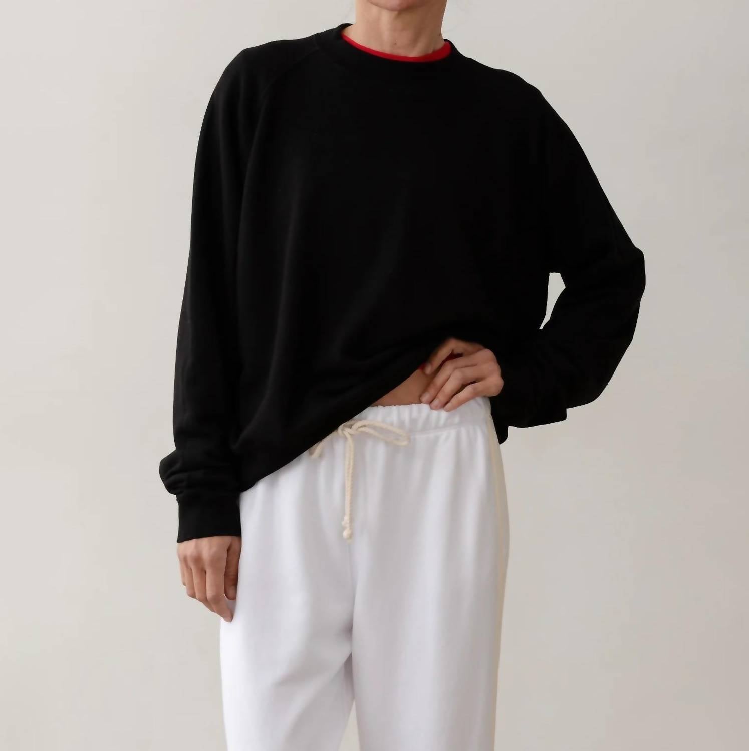 Experience the luxurious comfort of the Eco-terry Sweater by DONNI., a must-have for the modern wardrobe. This women’s crewneck sweater features long sleeves and is crafted from 100% organic cotton for exceptional softness and a naturally cozy feel. Designed in a timeless solid jet black pattern, this pull-on piece is proudly made in Los Angeles. Ideal for winter travel, it is easy to care for with machine wash instructions.