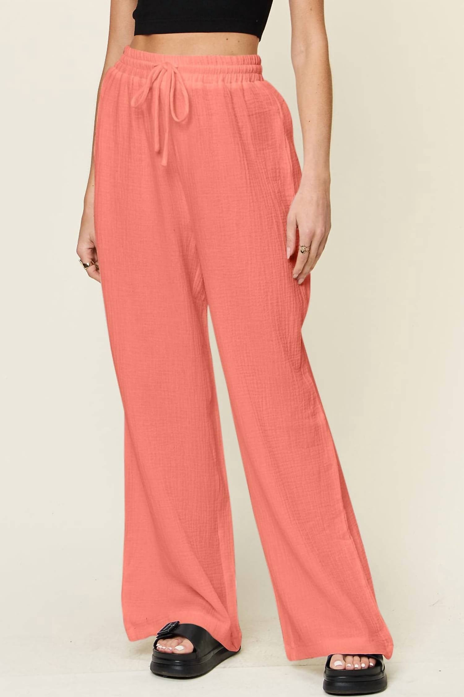 Esta Calça Larga com Cordão é confeccionada em 100% algodão, oferecendo um caimento solto com cintura alta e bolsos. O fecho pull-on e o design de perna larga proporcionam um estilo despojado, enquanto a lavagem à máquina com água fria e a secagem em temperatura baixa garantem fácil cuidado.