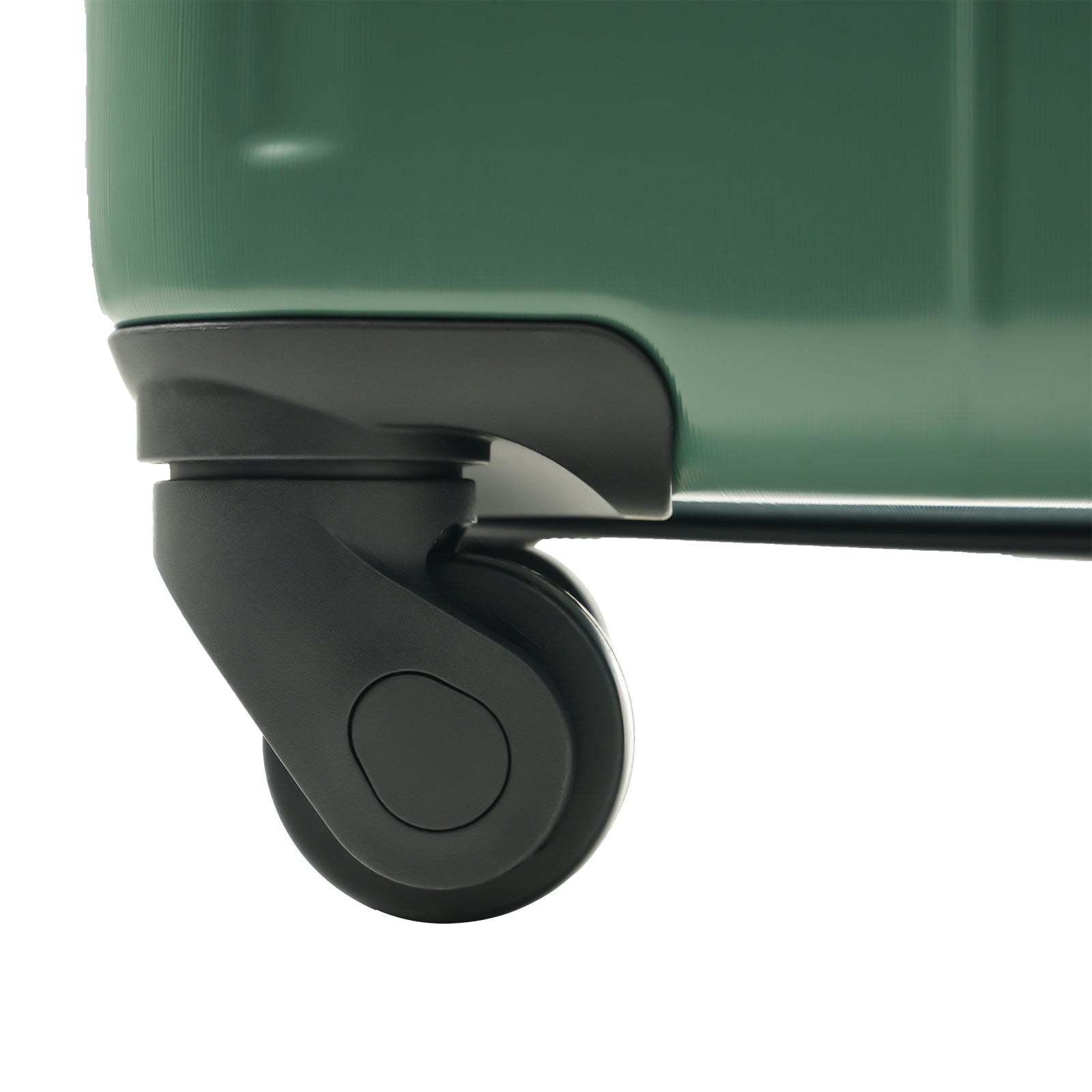 This compact carry-on is designed for the traveler who values discipline and detail. Its molded ABS shell delivers confi­dence-inspiring protection that resists wear, impact, and the scuffs of transit while remaining remarkably lightweight. Finished in a muted blackish-green, the case reads as quietly sophisticated and purpose-built.