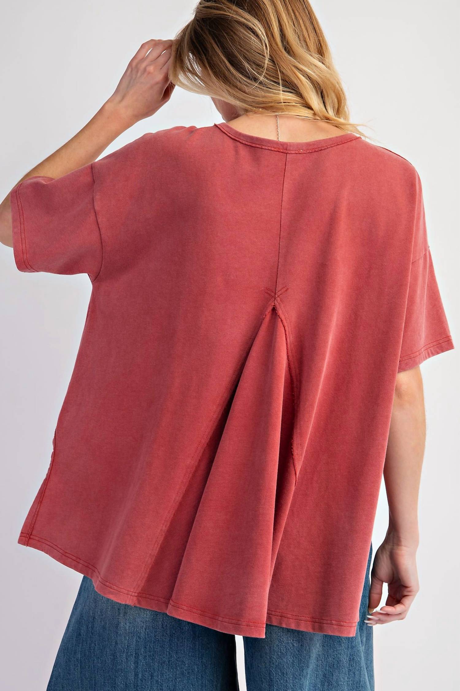 This classic, short sleeve tee will be your go-to staple this season and beyond. Introducing the Star Studded Patch Mineral Washed Top by Easel, a chic addition to any summer wardrobe in vibrant cherry. This short sleeve tee features a stylish star patch design with studded details, offering a relaxed, oversized fit and a casual drop shoulder style. Crafted from 100% cotton, it provides comfort and breathability, making it ideal for everyday wear or vacation. The pull-on closure and crewneck ensure easy wearability, in sizes ranging from 1XL to 3XL, true to size.