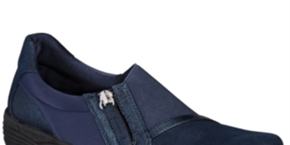 Um detalhe de zíper assimétrico atualiza a silhueta clássica dos confortáveis tamancos Dreamy da Easy Street. | Salto plataforma 1-1/2 | Tamancos com bico redondo e fecho de zíper | Palmilha acolchoada removível com construção Comfort Wave; palmilha removível Lite'n Up de EVA contornada; solado Solite de EVA de baixa compressão | Disponível nos tamanhos Médio (M) e Largo (W) | Cabedal sintético; sola sintética | Importado