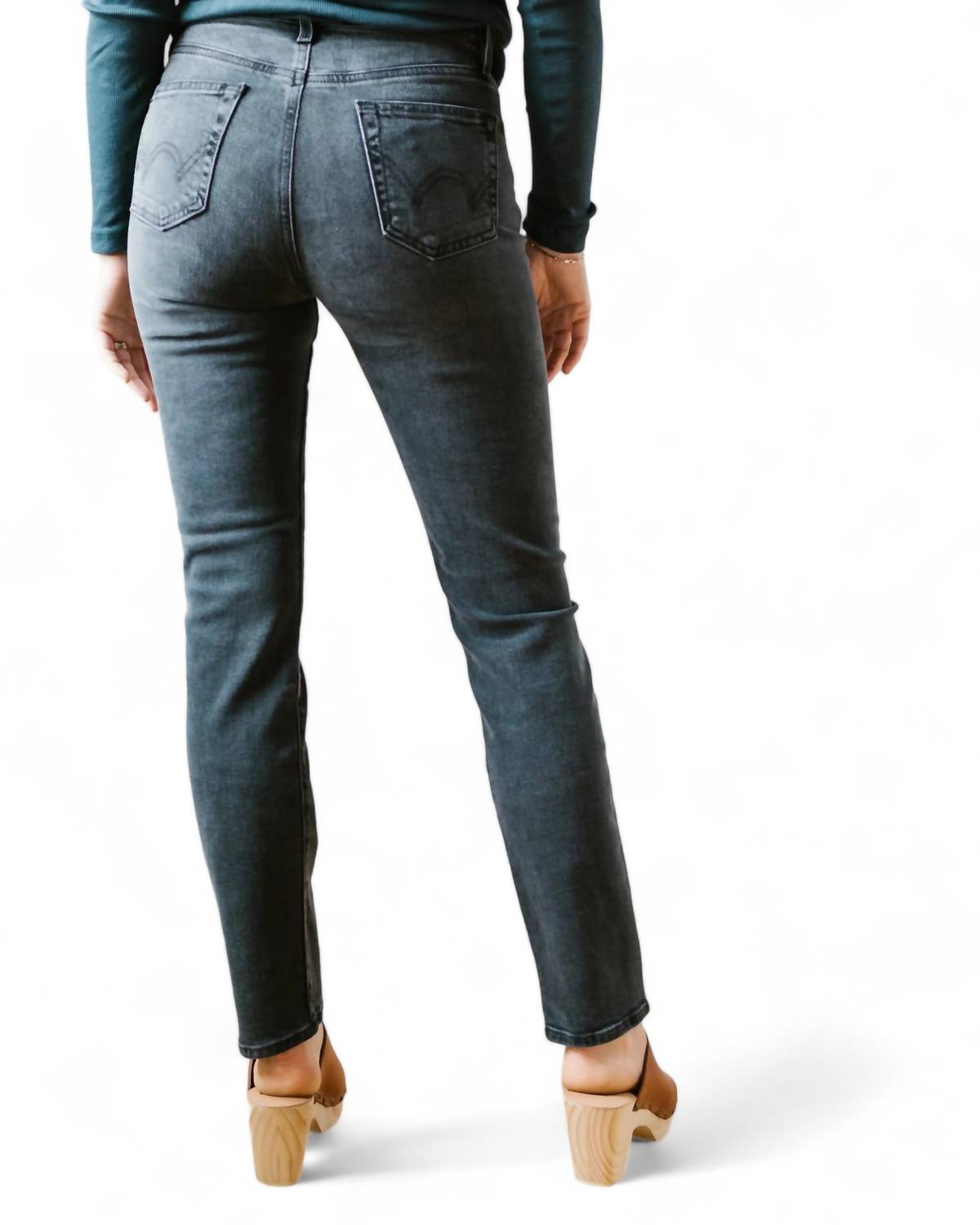 Mid-rise, straight leg jeans with a 5-pocket style and a button closure with a zip fly. Made from 98% organic cotton and 2% spandex for a touch of stretch. Front rise is 10" and inseam is 29". Machine wash cold.