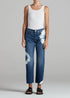 High-rise boyfriend jean sits at the natural waist and features a relaxed fit with a cropped leg. Material: 100% Organic Cotton. Machine wash. True to size. Measurements - Front rise: 10 1/2" | Leg Opening: 15 1/4” | Inseam: 27".