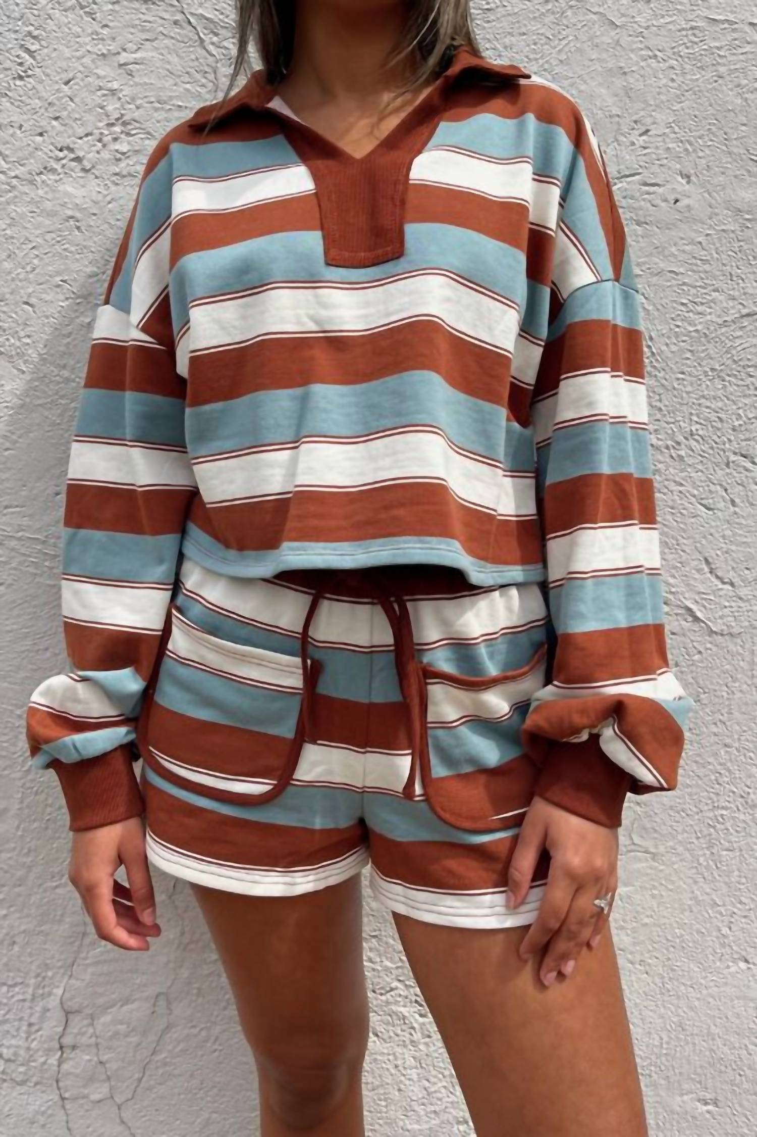 Fit to perfection, we love these high-waist shorts and you will too. Elevate your casual wardrobe with the Striped Contrast Trim Patch Pocket Shorts by ee:some, designed for both style and comfort. These shorts feature a sleek striped pattern in a captivating Mocha Sky hue, complemented by carefully tailored contrast trim. With functional patch pockets, they merge practicality with elegance, making them perfect for any sophisticated yet relaxed setting. Ideal for the fall season and occasions like Thanksgiving or game day, these shorts embrace the athleisure trend effortlessly.